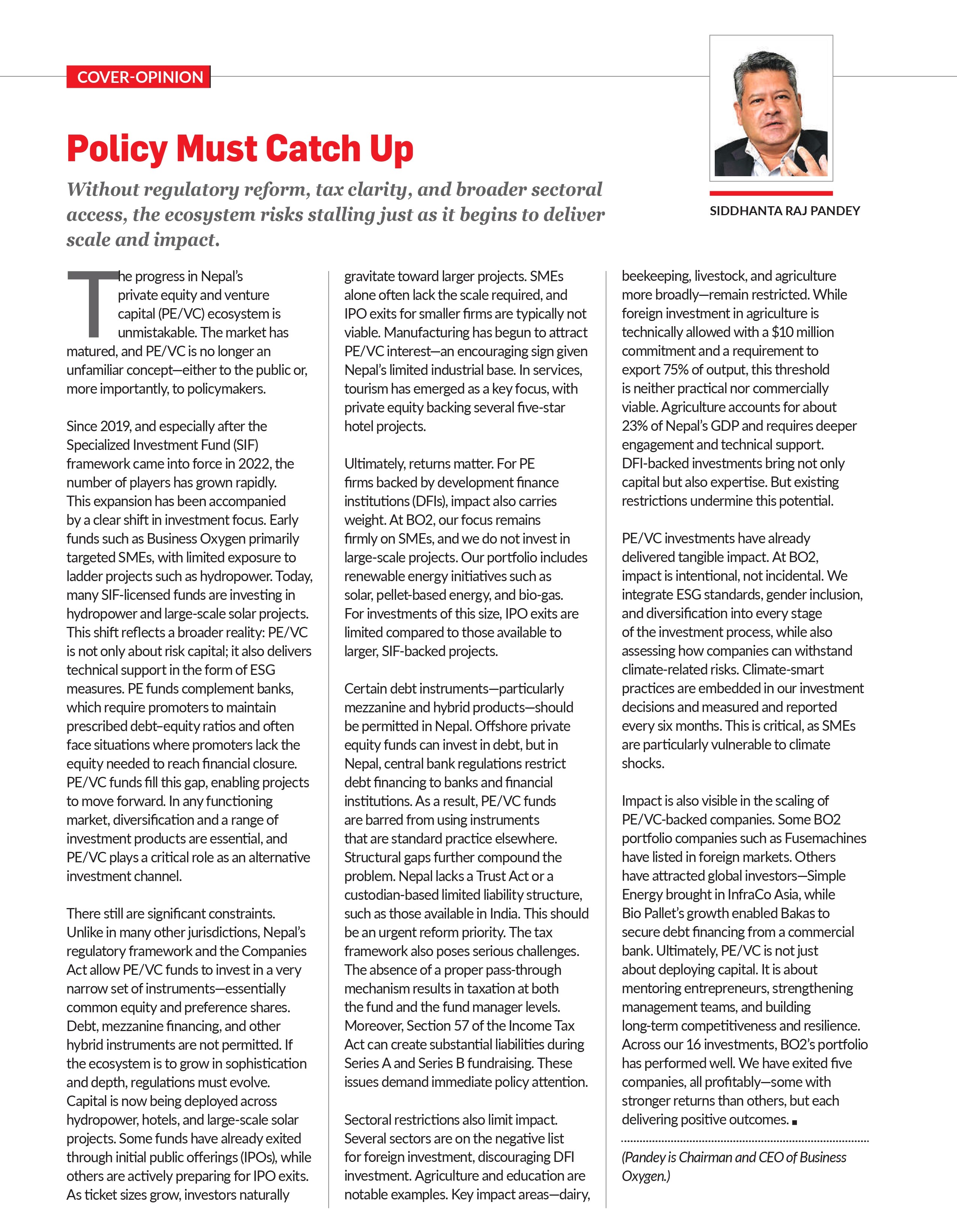 The risk today is not collapse, but stagnation. Without timely reform, Nepal’s private equity ecosystem could become locked into a narrow corridor—dominated by IPO-ready, asset-heavy projects—while innovation-led firms, early-stage ventures, and impact sectors remain chronically underfunded.